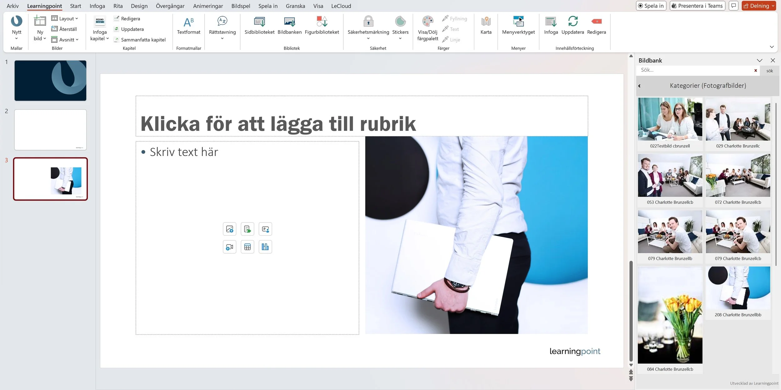 Har ni bilder eller text som ni enkelt vill lägg in i era dokument och presentationer, då har vi lösningen – Bild- och Textbiblioteket. I vår väldigt populära funktion Textbiblioteket kan ni spara både texter och bilder som ni döper och kategoriserar. Det gör det enkelt för användaren att hitta rätt och slippa uppfinna hjulet igen varje gång en text ska skrivas. Textbiblioteket finns även för Outlook.