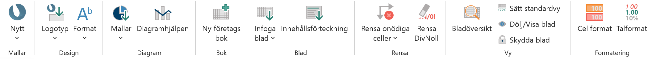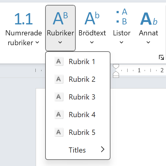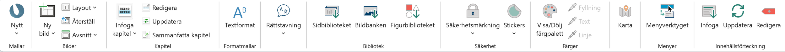 Våra formatmallsknappar hjälper användaren att använda rätt formatmallar i sin dokument och presentationer. I dessa menyer läggs enbart din organisations designade format. Resultatet blir enhetliga dokument som följer er grafiska profil.